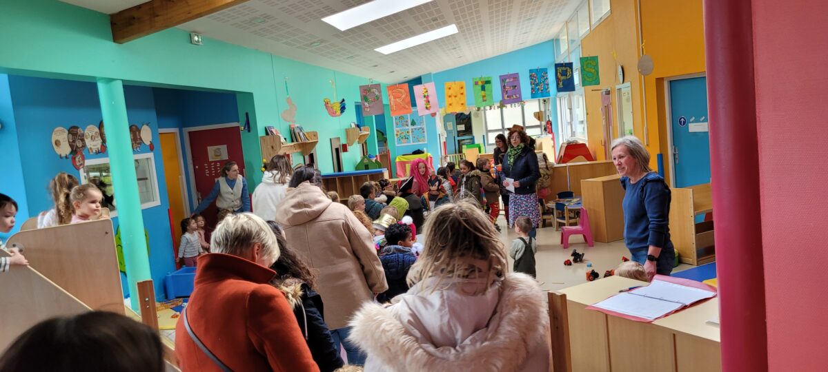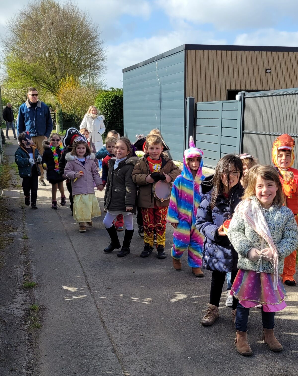 Les deux classes maternelles se sont parées des couleurs du printemps et ont déambulé dans le village en passant par la crèche ou ils ont chanté une comptine aux bébés.